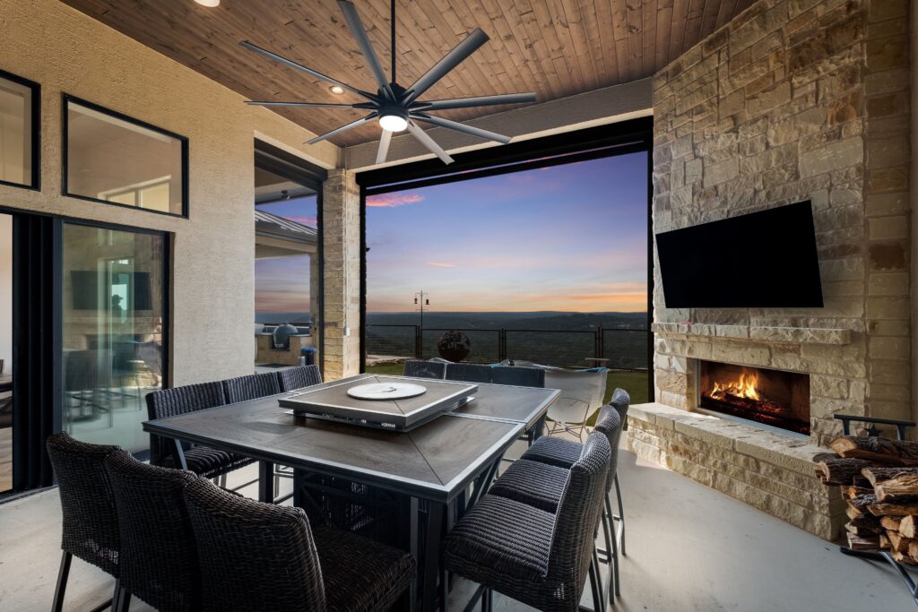 On another project, the building site sat two hundred feet below the road, on the side of a mountain — so steep that no one could even walk to the home’s future location when the project began. Turner’s team built an access road down the slope, cleared and leveled the site, and constructed a home with a thirty-mile view through a canyon. From the road above, you would never know the house exists. Standing on the back patio, you feel as though you are the only people in the Hill Country — watching wildlife cross the property as the sun sets through the canyon. That is the kind of project that the Hill Country makes possible, and the kind of challenge that fifty-five years of experience prepares you to take on.