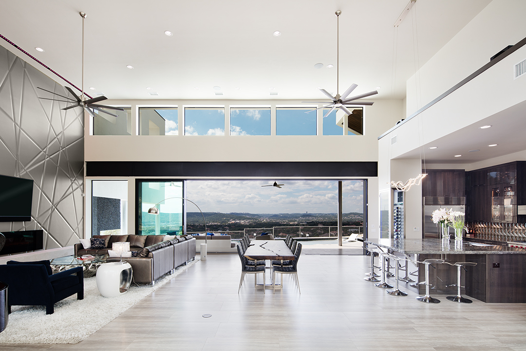 ‘Being up here in the Highland Lakes area and building up here in the Hill Country… I really enjoy the area up here,’ says Patrick Hollaway, who led this waterfront project. The home captures stunning lake views while providing luxury living for both everyday life and entertaining.